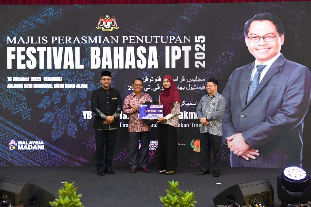 17 Oct Berita, Siaran Media, Uncategorized Mahasiswa yang teguh identiti bahasa Melayu tidak akan hilang arah – Mustapha Samud October 17, 2025 By editor Kementerian Pendidikan Tinggi (KPT) komited dalam menyokong usaha Institusi Pendidikan Tinggi (IPT) untuk melahir...Continue reading