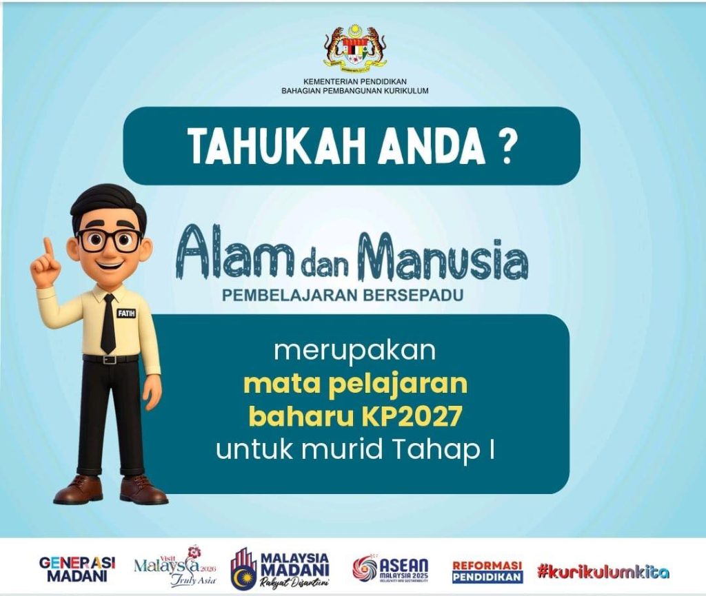 06 Nov Berita KPM perkenal subjek Alam dan Manusia kepada murid Tahap 1 sesi 2027 November 6, 2025 By editor Mulai sesi 2027, semua murid Tahap 1 akan belajar subjek baharu iaitu Alam dan Manusia menerusi Kurikulum Per...Continue reading