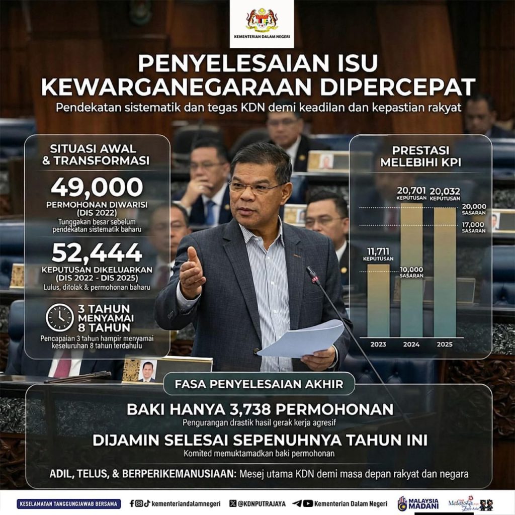 10 Feb Berita Tekad segera selesai isu kewarganegaraan February 10, 2026 By editor Kementerian Dalam Negeri (KDN) memandang serius permohonan kelulusan kewarganegaraan dan komited memastikan isu t...Continue reading